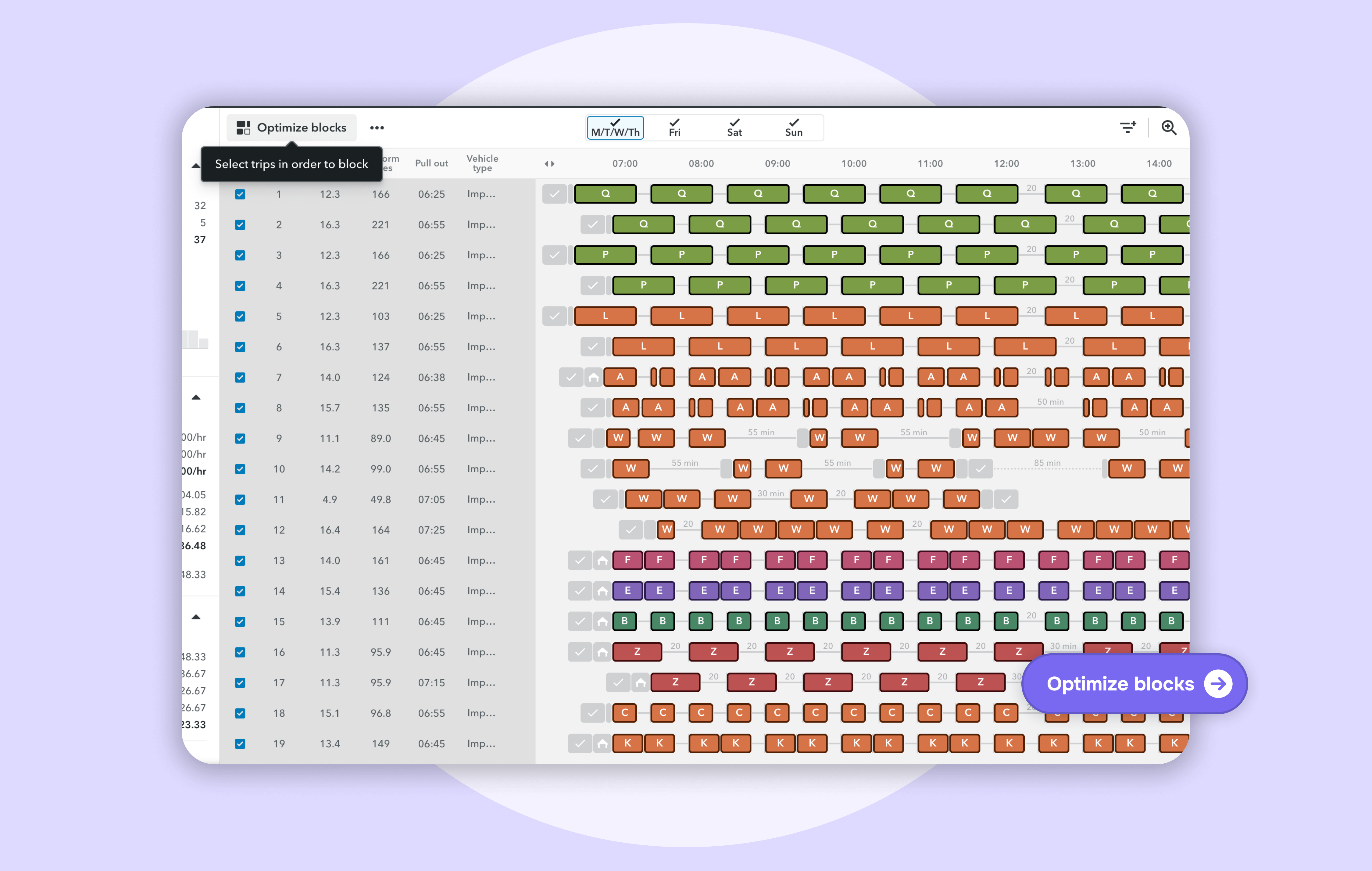 Optimized blocks make it easier to adapt to demand shifts, seasonal changes, or special events without unnecessary fleet expansion.