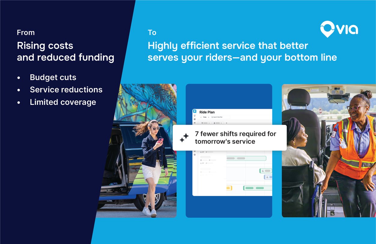 Even with the right service plan, costs can escalate if operations aren’t optimized. To drive operational efficiency, a combination of technology tools and smart approaches can help to reduce overhead and ensure that resources are deployed where they’ll be most useful. Via adopted two innovative approaches for LA Metro’s microtransit service: AI-powered supply planning, to match vehicle hours with rider demand, and a hub-and-spoke depot model, which limited deadhead. This allowed LA Metro to reduce the cost per ride by 12% while increasing ridership by 20%.