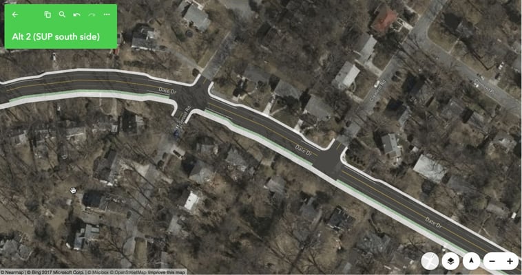 Before having new technology to support the early phase street design process for both cross section and plan views, we relied heavily on consultants for visuals. It was a time-consuming process working back and forth with consultants in a time-intensive and manual process to try to achieve the multiple alternatives quickly. We had to worry about measurable scale- sketching by hand and literally handwriting on top of a public web map in a graphic design software or desktop office software- so we could give it to the consultants for the early stage of design.